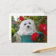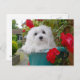 Une carte postale joliment mignonne et colorée avec une photo de Snowdrop le maltais