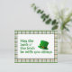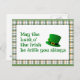 Un casquette de Leprechaun vert jaunty avec le libellé "Puisse la chance aux Irlandais être avec vous toujours", mis sur un arrière - plan irlandais vert plaid. Parfait pour envoyer des salutations Lucky à la famille et aux amis.
