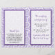 Simple mais élégant, la collection moderne paisley mariage est un design étonnant avec une belle impression cachemire dans une couleur violet et blanche douce, qui est parfait pour toute célébration mariage moderne. Ces programmes peuvent être personnalisés pour votre occasion spéciale et rendraient la commande parfaite de service pour votre mariage, douche nuptiale, fête de fiançailles, fête d'anniversaire et bien d'autres occasions spéciales. Ajoutez votre libellé personnalisé à cette conception à l'aide des cases "Modifier ce modèle de conception" situées à droite de l'élément, ou cliquez sur le bouton bleu "Customiser" pour arranger le texte, modifier les polices et les couleurs et ajouter des informations ou des images supplémentaires à cette conception. AFFICHER LES ÉLÉMENTS CORRESPONDANTS POUR CETTE COLLECTION