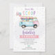 Amusez-vous avec cette invitation à l'anniversaire de la camionnette de crème glacée aux couleurs pastel ! Parfait pour une fête douce, ce design personnalisé présente de charmantes illustrations de crème glacée et des couleurs douces. Customisez facilement avec les détails de votre fête pour rendre la journée spéciale et délicieusement mémorable.