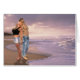 La danse de l'amour. Un dans une série au moins de sept conceptions d'un couple dans l'amour sur la plage avec les vagues enroulant le rivage, et un beau coucher du soleil dans le ciel nuageux. L'image de la scène simple de plage, sans couples, est disponible sur un timbre-poste pour assortir ces cartes.