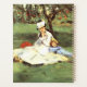 La famille Monet dans leur jardin. Edouard Manet. Paysage estival. Une femme en belle robe et casquette est assise dans le jardin sous un arbre sur l'herbe. Un garçon est assis sur l'herbe à proximité. Reproduction d'oeuvres d'art célèbres dans le domaine public.