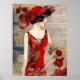 Une femme dans une robe rouge mélangé collage médiatique en utilisant l'éphémère vintage AI généré art