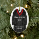 L'ornement de graduation recto verso personnalisé décoré de couleurs de robe rouge et noir pour cette femme senior spéciale. Modifiez le texte personnalisé à l'avant et à l'arrière dans l'éditeur de texte Zazzle facile.