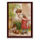 Une fille avec une poupée semble réfléchie pendant qu'elle observe un jeu de chiot avec un chaton dans cette carte commerciale victorienne du fin du 19ème siècle.