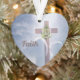 Cet ornement en acrylique de Pâques a ma peinture graphique d'une croix dans les nuages. La croix a un draps blanc et un amas de lys de la vallée. Tout le texte peut être modifié. Cet ornement deviendra un héritier familial précieux. D'autres ornements sont dans la collection "Ornements" de mon magasin.