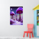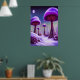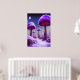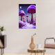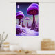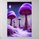 Une grande forêt de champignons où l'on trouve de grands champignons violets, un ciel bleu, de la neige et de l'hiver. C'est un art généré par l'IA