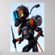 Une fourmi en pleine armure noire de la police prête à l'action. C'est un art généré par l'IA.