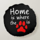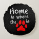 Un jeu de mots avec la citation "Home is where the heart is", cet oreiller de lancer rond a les mots "Home is where the [photo empreinte de patte] is", avec l'image empreinte de patte en rouge, représentant le "coeur". Le cadeau idéal pour les amoureux des animaux de compagnie.