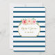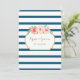 Cartes modèles personnalisées Faire-part de mariage en rayures bleu marine et blanc motif avec détails or, fleurs vintages rustiques roses et pêche et texte vintage de style manuscrit. Customisez ces invitations avec vos coordonnées mariages. Disponible dans des produits assortis pour tous vos besoins mariages.