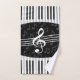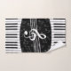 Une conception musicale élégante dans le gris, noir et blanc avec une grande clef triple au centre avec le piano incurvé verrouille créer une frontière au dessus et au bas de la conception avec un motif subtil des notes musicales grises à l'arrière-plan. Un cadeau attirant de musique pour le pianiste, le mélomane ou le musicien.