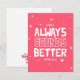 Partagez votre amour avec cette carte sincère présentant la phrase « La musique est toujours meilleure avec toi ». Parfaite pour les amoureux de musique, les couples et les âmes sœurs qui rendent chaque moment plus harmonieux ensemble. Que ce soit pour la Saint-Valentin, un anniversaire ou juste parce que, ce design capture magnifiquement la mélodie de l'amour.