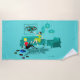 On dirait que ce sera un moment amusant avec cette serviette de bain kitschy Retro Girls’ Night In Beach. Dans un style années 60, le design minimaliste de l'art présente deux femmes avec des cocktails roses dans un salon moderne, aqua et turquoise du milieu du siècle. Ces dames savent certainement se détendre. La beauté des cheveux raven dans la robe verte et flirtante est en train de se reposer sur le canapé atomique. Sa compagne blonde est assise sur un tapis en forme de zèbre, portant un dessus rouge et un pantalon noir serré. Le lecteur de disques vinyle vintage et les lampes à lampes à lampes à lampes en papier donnent l'ambiance. Un décor, un âge de l'espace, des imprimés d'art du globe sont accrochés au-dessus du canapé mod.