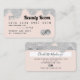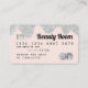 Un élégant carte de visite moderne et élégant de style de carte de crédit de beauté avec une typographie de police de script moderne sur une parties scintillant chic faux argent goutte sur le rose pastel doux. tout le texte est personnalisable, ajoutez vos médias sociaux. Doté d'une bande d'or faux rose. Ajoutez votre logo, votre monogramme et votre code QR.