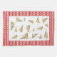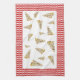 Cette serviette de plat faite sur commande de cuisine ou serviette de thé a des tranches de pizza partout il, sur un arrière - plan blanc. La frontière ressemble à une nappe checkered rouge. Elle me rappelle une pizzeria.