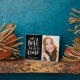 Ce design amusant de graduation présente du texte écrit à la main, des feux d'artifice en or et des étoiles contre un arrière - plan noir audacieux.