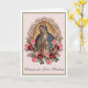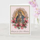 La carte de guérison présente une belle image traditionnelle catholique de Notre-Dame de Guadalupe avec des roses roses roses et rouges sur un cadre vintage en or. Un verset d'écriture est à l'intérieur avec le verset optionnel sur le côté droit. Tout le texte et les polices peuvent être modifiés.