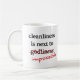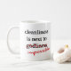 Le texte noir d'empattement sur le blanc indique : La "propreté est à côté de piété" - mais la "piété" a été griffonnée avec un stylo rouge et remplacée par un "impossible" manuscrit.