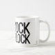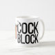 Une tasse avec le design de Mighty Cockblock et le caractère original de Stitchmind Artworks.