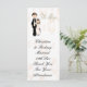 Ce marque-page de remerciement pour un doux mariage a un fond blanc avec de douces cloches de mariage dessus et présente une mariée et un marié. Le design a été conçu par Sketchart26 en utilisant des illustrations de Delightful Doodles.