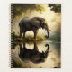 Planificateur éléphant. Une illustration assez sereine d'un éléphant debout dans la forêt qui se réfléchit dans l'eau. Une oeuvre d'art calme et tranquille pour vous aider à vous détendre. Le dos a un motif d'éléphants.