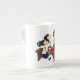 jolie porcelaine, bonne dimension effet brillant bien dans l'ensemble. Le motif et les couleurs sont réussis.Je trouve néanmoins dommage de ne pas occuper tout l'espace avc le motif car la partie rouge au dos de la tasse est trop présente et pas intéressante visuellement.