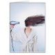 Une femme tient un sèche-cheveux qui souffle ses cheveux horizontalement à travers son visage. Cette carte est pour ces magiciens presque techniques dans votre vie.
