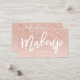 Un carte de visite élégant de certificat-prime de maquilleur avec la typographie élégante de style de lettrage de main de manuscrit dans le blanc sur des parties scintillantes roses d'or de faux et un pastel modernes et élégants rougissent arrière - plan à la mode et élégant rose. Si vous avez besoin de n'importe quelle personnalisation, n'hésitez pas en me contactant