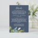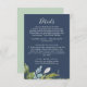 Cette carte d'enceinte de détails marine verdoyante estivale est parfaite pour un élégant mariage du milieu de l'été. Le design botanique présente un agencement luxuriant d'eucalyptus à l'aquarelle peinte, de verdure et de feuilles verts avec de subtiles touches de fleurs roses rousses sur un arrière - plan bleu marine.