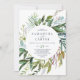Cette verdure estivale en un seul faire-part de mariage est parfaite pour un élégant mariage du milieu de l'été. Le design botanique présente un agencement luxuriant d'eucalyptus couleur aquarelle peint, de verdure et de feuilles verts avec de subtils ressorts de fleurs roses rousses. Enregistrez du papier en incluant les détails au verso du faire-part de mariage plutôt que sur une carte de boîtier séparée. Inclure également les informations RSVP si votre invité répondra par voie électronique (facultatif). Pour cette conception sans détails sur le dos, veuillez consulter cette liste : https://www.zazzle.com/256702897711164943