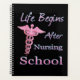Une école de soins infirmiers amusante, la vie commence après le design de l'infirmière de l'école de soins infirmiers avec un symbole médical Caduceus. Cela constitue un cadeau parfait pour une infirmière autorisée, une infirmière autorisée, un étudiant en soins infirmiers ou un IPA.