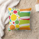 American MOJO coussin avec Life's a Party design, un mélange de couleurs vives pois, fleurs et bandes tourbillonnant sur un arrière - plan blanc.