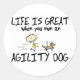 Cadeaux faits uniquement pour les propriétaires de chiens agiles, avec une personne de dessin animé en bâton courant avec leur petit chien brun, qui saute par-dessus un saut. Le design mignon dit que la vie est super quand vous possédez un chien d'agilité! Autocollants d'agilité unique pour chien.