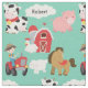 Les enfants de tissu aimeront, comportent un arrière - plan d'aqua avec de divers animaux de ferme aussi bien que l'agriculteur conduisant un tracteur rouge, un nuage que vous pouvez customiser avec le nom de votre enfant, et une grange et un silo rouges de foin. Comporte également un cheval brun, une vache repérée noire et blanche, un porc rose, un agneau blanc, et un poulet !
