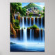 Une belle ville près d'une magnifique cascade claire avec une montagne dans l'arrière - plan. C'est un art généré par l'IA.