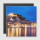 Peinture de la ville de Sibenik en Croatie. Ville éclairée avec forteresse, bâtiments anciens, mer et ciel bleu. Port de Sibenik, Croatie la nuit, vue à l'heure bleue sur la forteresse St. Michael's.