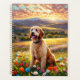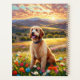 Labradoodle dog in beautiful field of flowers with sunset. Puzzles, puzzles in tins, planners, notebooks with this design in my stores. Add text to personalize.. Lots of pet and scenery designs in my stores. Add this design to other products. Add text.