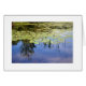 J'ai aimé tout dans cette image - les bleus et les verts, les protections de lis rondes et l'herbe en épi de lac, et particulièrement les réflexions des arbres et des nuages blancs sur l'eau.