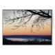 Cette carte de billets offre une vue sur une colline au sud du lac Cayuga, le plus long des lacs glaciaires Finger du centre de New York. La ville d'Ithaca est située à l'extrémité sud. C'est l'endroit idéal pour admirer ce coucher de soleil à couper le souffle. Le ciel brille avec des couleurs brillantes d'orange, rose, jaune, crème, bleu et violet. Des collines silhouettes bordent la rive est. Une branche basse domine le premier plan et encadre cette belle scène.