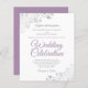 Ces invitations de mariage abordables et abordables sont le choix parfait pour la classe, le style et la beauté sur un budget. Le design présente du violet ou de la lavande poussiéreux et du texte gris sur un arrière - plan blanc classique avec des boucles et des tourbillons gris argenté dans les coins. La typographie comprend des lettres de script sophistiquées pour un style à la fois simple et élégant. Merveilleuse façon d'invitation vos amis et votre famille pour partager votre joie dans votre journée spéciale sans casser la banque.