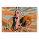 rendu numérique 3D d'une belle jeune femme et d'un lion sur un arrière - plan de paysage désertique