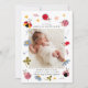 Carte de faire-part de naissance mignonne avec une photo verticale de votre nouveau-né illustrant l'illustration de coccinelles, de fleurs et d'étoiles.