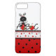 L'iPhone 7 Plus coque de l'enseignant, avec les graphiques d'une coccinelle mignonne à côté des cerises et le texte graphique ABC entre les cerises. Motif à pois décoratifs noir, rouge et blanc, dans la partie inférieure de la coque. Un coque magnifique pour n'importe quel enseignant et fait une excellente idée cadeau