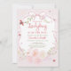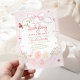 A soft and elegant baby shower invitation featuring blush pink florals, delicate greenery, charming ladybugs, and a graceful bow. The gentle pastel color palette and romantic garden style make this design perfect for a baby girl shower. Matching items available.