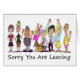 C'est une carte partante avec une rangée des caricatures de bande dessinée des collègues de mâle et de travail des femmes avec varier des aspects et des expressions du visage comiques et d'un chat ondulant au revoir. Ils sont placés sur un fond blanc. Il est pour quelqu'un qui quitte le lieu de travail ou l'équipe de personnes. Il pourrait être pour quelqu'un avec un nouveau travail, ou qui se retire. L'image est mon propre original d'un croquis tiré par la main, rayé dedans manuellement et balayé et numériquement coloré dans le carnet à dessins pro utilisant une sélection de couleurs.