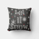 Faux coussin en damier noir avec des flocons de neige blancs et des points rouges avec le libellé amusant "Let it Snow" pour décorer votre maison pour l'hiver.