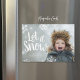 Cartes photos de vacances magnétiques sur mesure abordables avec des modèles simples pour la personnalisation. Ce design hivernal mignon a lettré à la main typographie avec une bordure de flocon blanc sur votre photo de fond saigné. Le message dit "Let it Snow" personnalisé avec votre nom de famille et l'année ou autre texte personnalisé. Utilisez les outils de conception pour modifier les polices de texte et les couleurs, ou ajuster la disposition des flocs de neige pour travailler avec votre photo pour créer un unique d'un design carte photo de vacances.