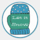 Des autocollants amusants d'enveloppe de Noël, avec une grande mitaine de dessin animé bleu et vert, posés sur un arrière - plan blanc, avec une bordure bleue. Lectures de texte blanc personnalisées Laissez-le neiger et peut être personnalisé pour lire ce que vous voulez. Des produits de vacances coordonnés sont disponibles.