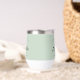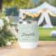 Donnez un toast mariage et un cadeau souvenir amusant à vous et à vos invités mariages, groomsmen et fête de mariée avec ce tumbler thermique personnalisé unique avec un croquis de montagnes, "Let The Adventure Begin" écrit dans un mélange de typographie simple et un script rétro, et vos noms et date mariage. Vous pouvez modifier la couleur arrière - plan verte sage si vous le souhaitez en modifiant l'outil de conception.