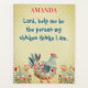 Ce planificateur présente un poulet d'art populaire de campagne coloré sur le devant avec un arrière - plan de pois bronzés et blancs. La typographie est en bleu royal et dit "Seigneur, aide-moi à être la personne que mon poulet pense que je suis". Vous le personnalisez en haut avec votre nom. L'envers a un poulet différent avec le même arrière - plan de pois.